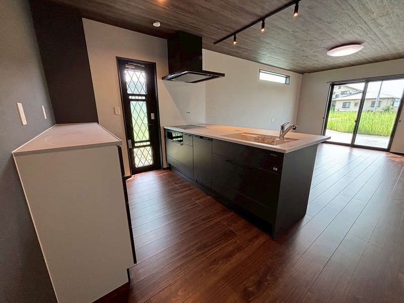 キッチンからリビング全体を見渡せるため、家族とのコミュニケーションも自然と生まれる空間です。