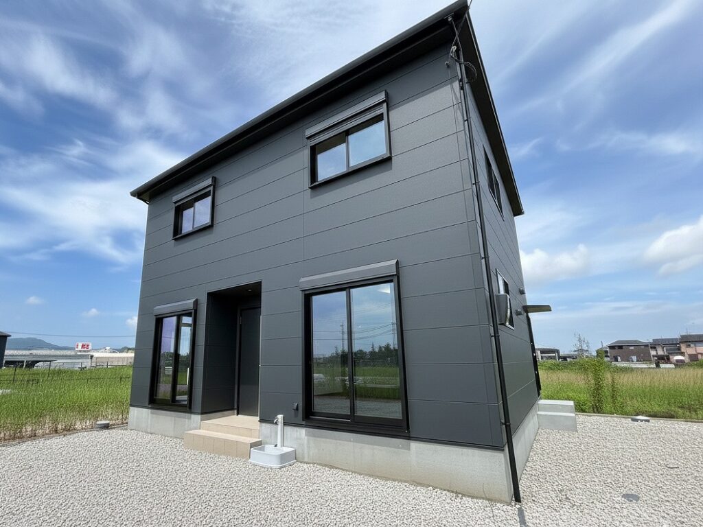 ダークトーンの外壁でまとめた、直線的で無駄のないデザイン。