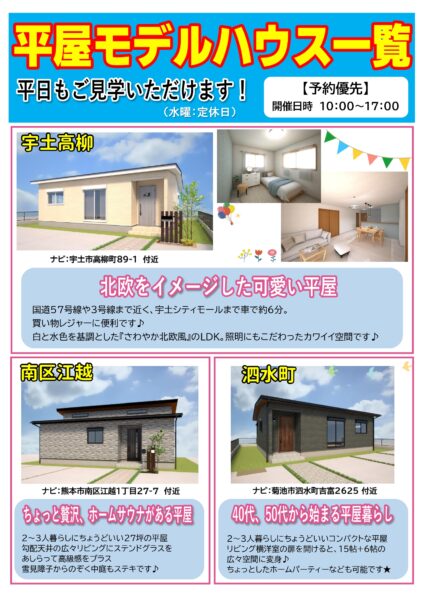 【泗水平屋モデルハウス2棟】見学会開催!!10月4日(土)・5日(日)