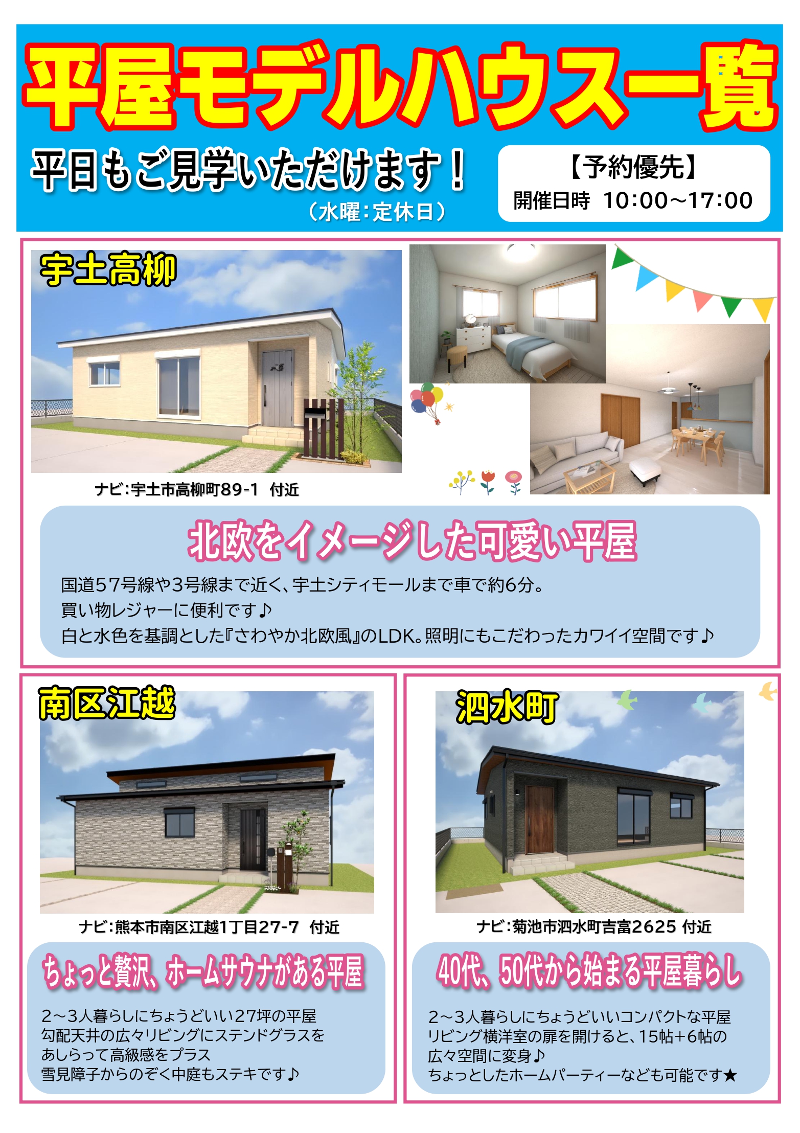 【泗水平屋モデルハウス2棟】見学会開催!! 9月20日(土)・21日(日)