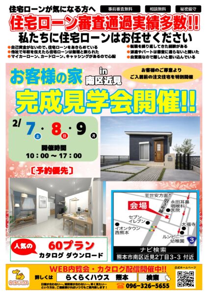 季節によって場所は異なりますが、熊本の新築モデルハウスが見学可能です。