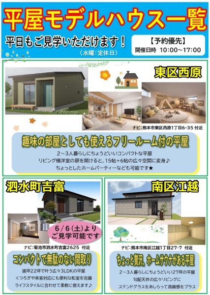 平屋モデル一覧 東区西原/菊池市泗水/南区江越